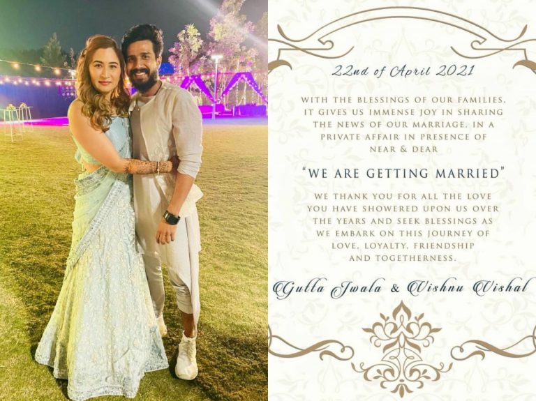 Tamil actor-producer Vishnu Vishal is all set to enter wedlock for the second time with badminton player Jwala Gutta. The duo, who got engaged in September 2020, will be getting married later this month on 22 April.